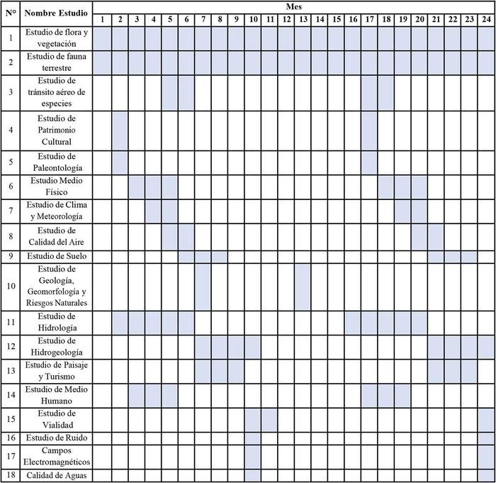 El cronograma de estudios del Proyecto se desglosa de la siguiente manera: