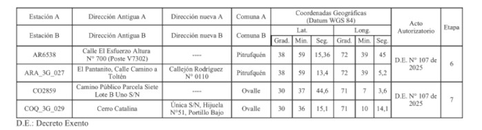 1. Autorízase a la concesionaria para modificar las direcciones de dos (2) radioenlaces, según se indica a continuación:
