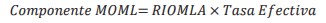 El componente MOML se entenderá como el monto que se obtiene de multiplicar la RIOMLA por la tasa efectiva de acuerdo con el valor del MOML, y se calculará anualmente según la siguiente fórmula: