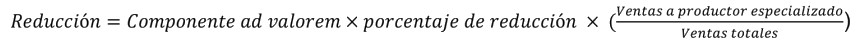 En ningún caso la reducción podrá ser superior al 18,5% del componente ad valorem determinado para cada trimestre.