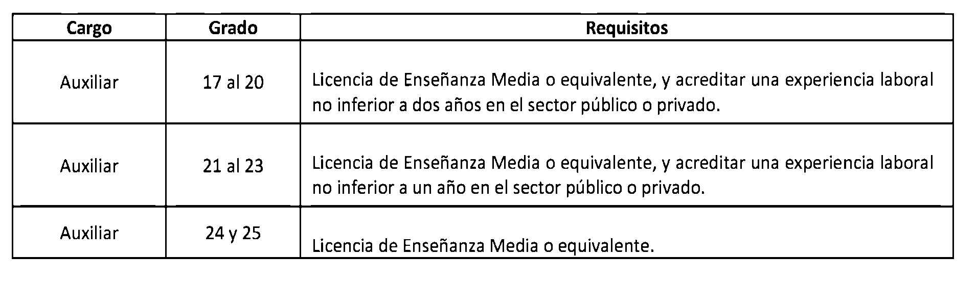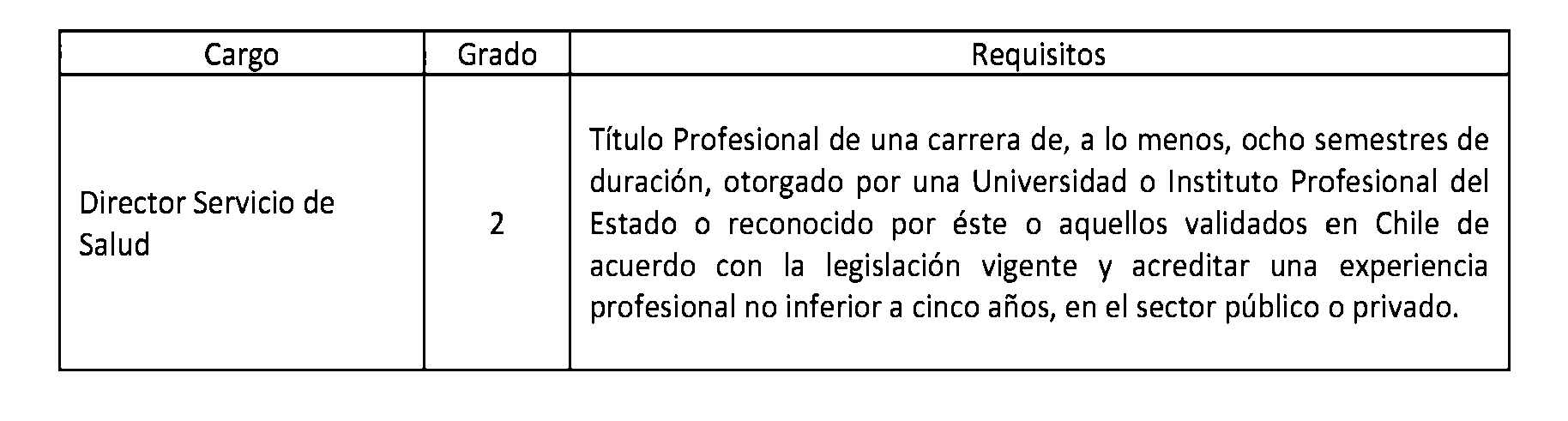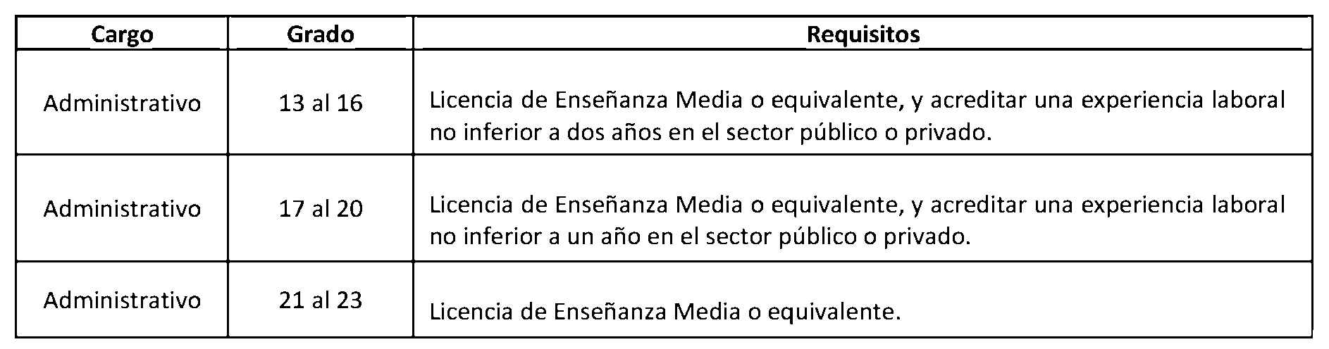 D.O. 12.12.2013Artículo 2°. Establécense los siguientes requisitos para el ingreso y promoción en las plantas y cargos que se indican a continuación: