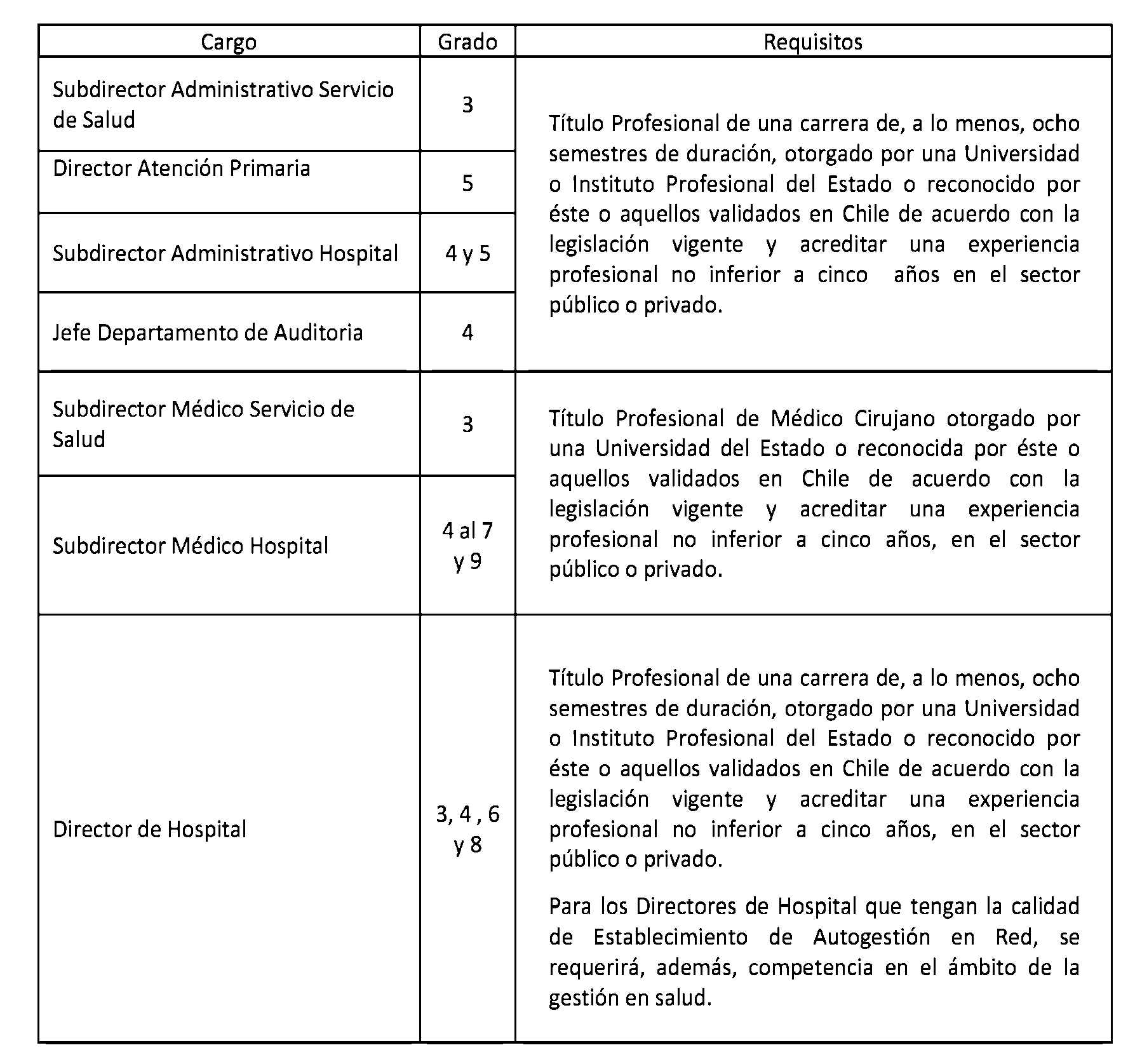 El artículo 11° del Decreto con fuerza de Ley 9, Hacienda, publicado el 18.10.2017, modifica la presente norma en el sentido de establecer el siguiente requisito para el ingreso y promoción en la planta: Subdirector Administrativo Hospital, grados 6° y 7°: Título Profesional de una carrera de, a lo menos, ocho semestres de duración, otorgado por una Universidad o Instituto Profesional del Estado o reconocido por éste o aquellos validados en Chile de acuerdo con la legislación vigente y acreditar una experiencia profesional no inferior a cinco años en el sector público o privado.
