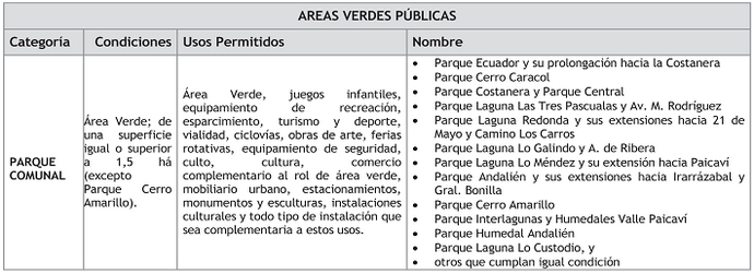 Prorróguese por 5 años a partir de la fecha de la publicación en el Diario Oficial del presente Decreto, las declaratorias de utilidad pública correspondientes a los terrenos destinados a parques comunales propuestos, emplazados en el Área Urbana del Plan Regulador Comunal que se indican en el cuadro contenido en Artículo 26 de la misma Ordenanza que a continuación se indica.