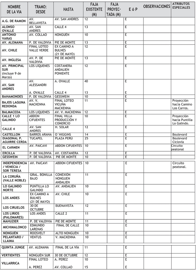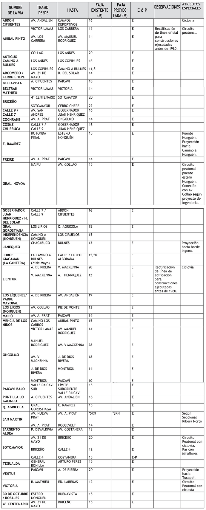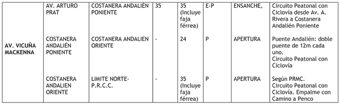 En el cuadro de vialidad denominado "Vías Troncales", reemplácese la fila correspondiente a la vía "Av. Vicuña Mackenna", por la siguiente: