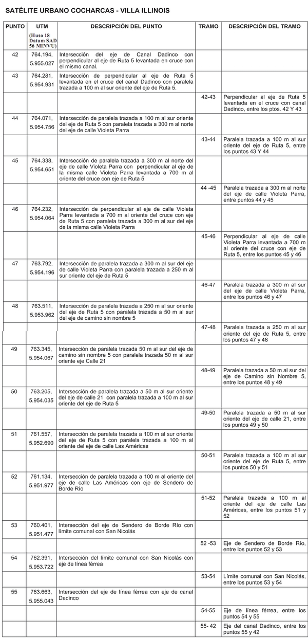 . Plano PRCSC –01 de los centros urbanos de San Carlos – Ninquihue- Cocharcas- Villa Illinois, polígono entre los puntos 1 y 55