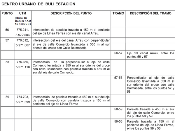. Plano PRCB- 02 del centro urbano de Buli Estación, polígono entre los punto 56 y 59