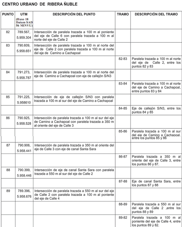 . Plano PRCC-03 de los centros urbanos de Tres Esquinas- Cachapoal- Ribera Ñuble, polígono entre los puntos 60 y 89