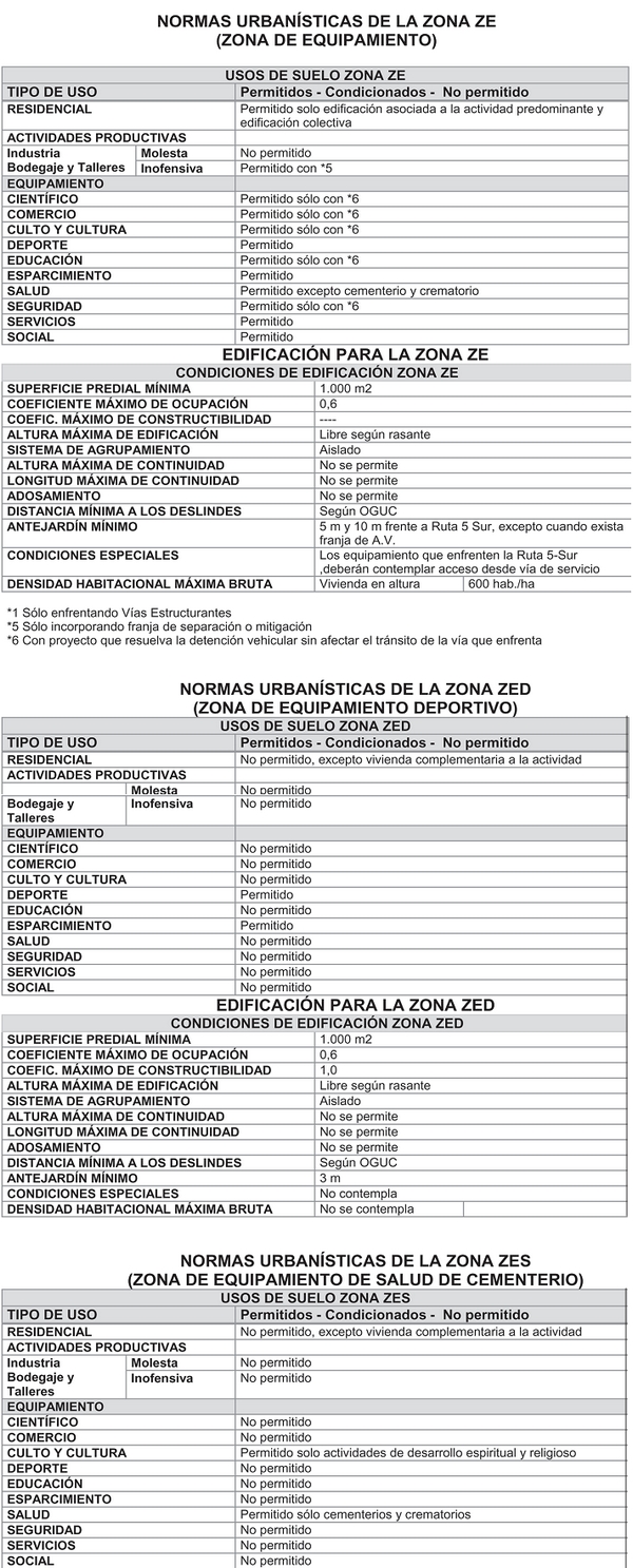 El Nº 1 del Decreto 546 Exento, M. de San Carlos, publicado el 05.12.2011, modifica la presente norma en el sentido de de Reemplazar la Nota *9 que dice "Para la zona comprendida entre los esteros Lurín y Lilahue la densidad máxima será de 100 hab/ha." por la siguiente:*9,"Para la zona comprendida entre los esteros Lurín y Lilahue la densidad máxima será de 120 hab/ha.