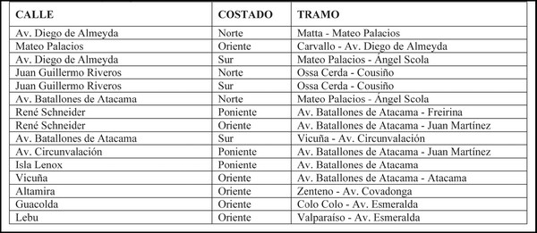 La descripción de puntos y tramos se presenta en el Artículo 4º de esta Ordenanza Local y se encuentran graficados en el Plano.