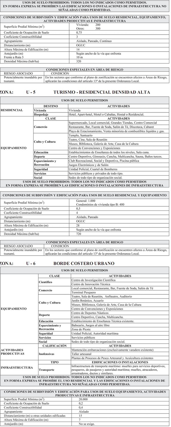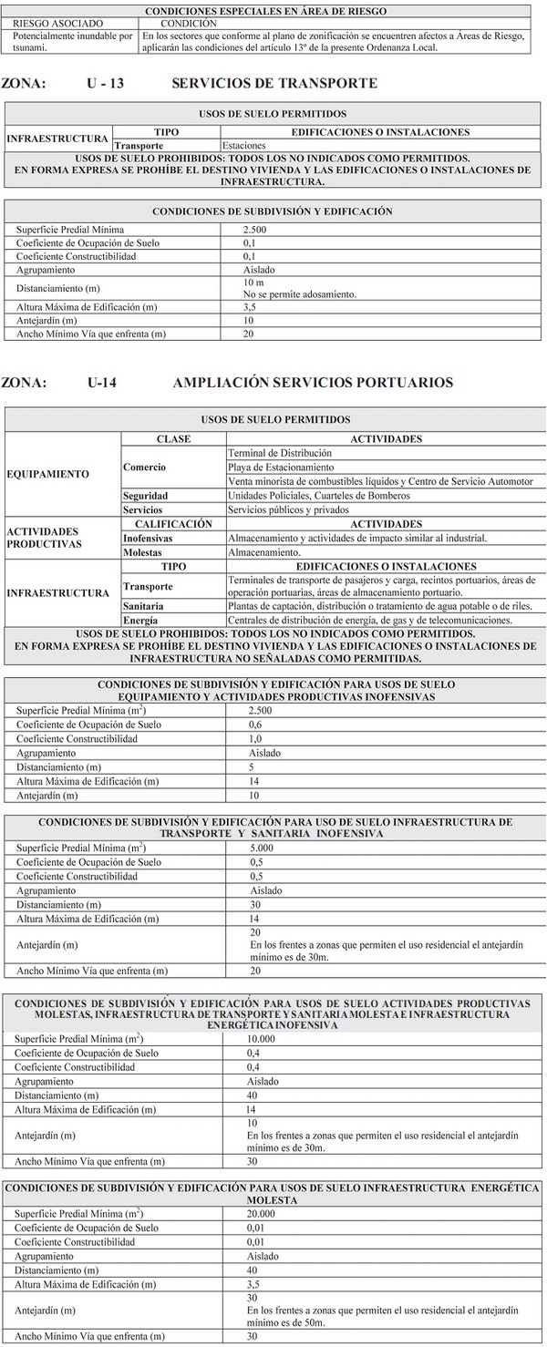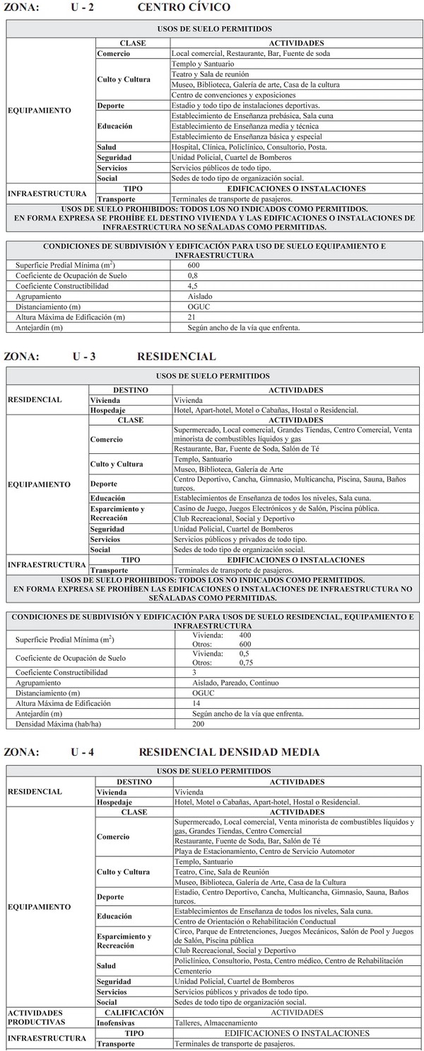Los Usos de Suelo corresponden a los definidos en la OGUC, debiendo cada uno de ellos cumplir con sus disposiciones.