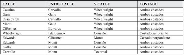 Los polígonos que circunscriben las áreas urbanas normadas por el PRCCAL están definidos por los siguientes puntos y tramos:
