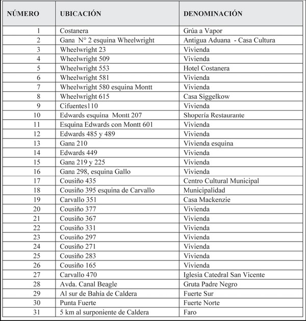 Los recursos de valor cultural que constituyen el patrimonio urbano de Caldera están representados por una Zona de Conservación Histórica y 31 Inmuebles de Conservación Histórica, acogidos a lo dispuesto en la LGUC, los que se señalan en el presente Capítulo y cuya ubicación está graficada en el Plano.
