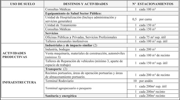 La cantidad mínima de estacionamientos exigibles se determina aplicando la siguiente Tabla: