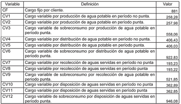 2.3. CARGO VARIABLE POR SERVICIO DE AGUA POTABLE EN PERÍODO PUNTA:
