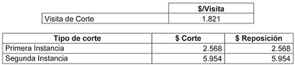 La empresa podrá cobrar por concepto de corte y reposición del suministro a usuarios morosos los siguientes cargos en las instancias que se indican: