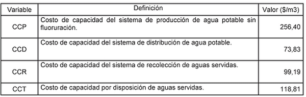 La descripción de las variables incorporadas en las fórmulas tarifarias anteriores y sus respectivos valores, al 31 de diciembre de 2008, son los indicados a continuación: