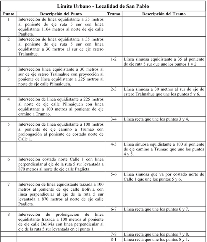 ARTÍCULO 6. El Límite Urbano enunciado en el Artículo 2 de la presente Ordenanza queda definido por los puntos y tramos que se describen a continuación: