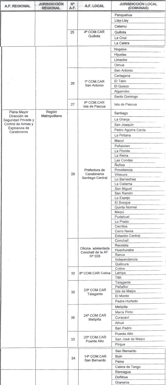 e) Lo dispuesto en el Decreto Exento (G) Nº 51, de 25.ene.2010, que designa autoridades fiscalizadoras de la Ley Nº 17.798, sobre Control de Armas y Elementos Similares, modificado por el Decreto Exento (G) Nº 266, de 14.abr.2010.