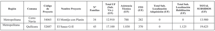 Considerando: Que los proyectos "El Montijo con Planin", y "El Sauce G-II", tipología Construcción en Sitio Propio, forman parte del llamado especial del Plan de Reconstrucción, se encuentran calificados y sus integrantes son familias damnificadas acreditadas con Ficha de Registro de Damnificados y cumplen con todos los requisitos exigidos en la resolución citada en el Visto c) anterior, dicto la siguiente