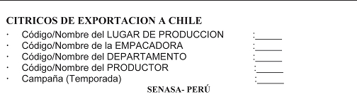 3. Adicionalmente, cada envío de fruta fresca para consumo de Toronja, Satsuma, Mandarinas o Tangerinas, Naranjas dulces y Tangelos, provenientes de los Departamentos de Ica y Lima, de Perú, deberá cumplir con los siguientes requisitos fitosanitarios: