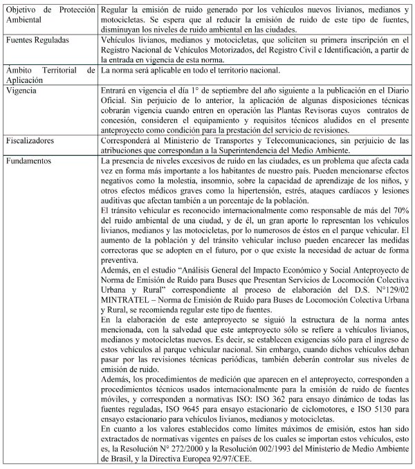 ANTEPROYECTO DE NORMA DE EMISIÓN DE RUIDO PARA VEHÍCULOS LIVIANOS, MEDIANOS Y MOTOCICLETAS