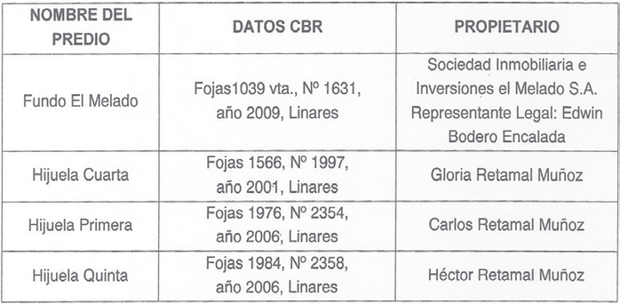 . 4º.- Que los predios donde será necesario realizar las exploraciones para el estudio y definición del proyecto definitivo de las obras son los siguientes: