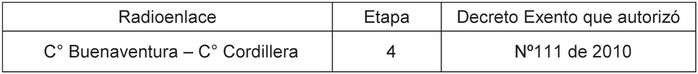 1. Autorízase a la concesionaria para cambiar los plazos de inicio y término de obras, e inicio de servicio de un (1) radioenlace, autorizado mediante decreto exento Nº 111, de 2010, del Ministerio de Transportes y Telecomunicaciones, según se indica a continuación: