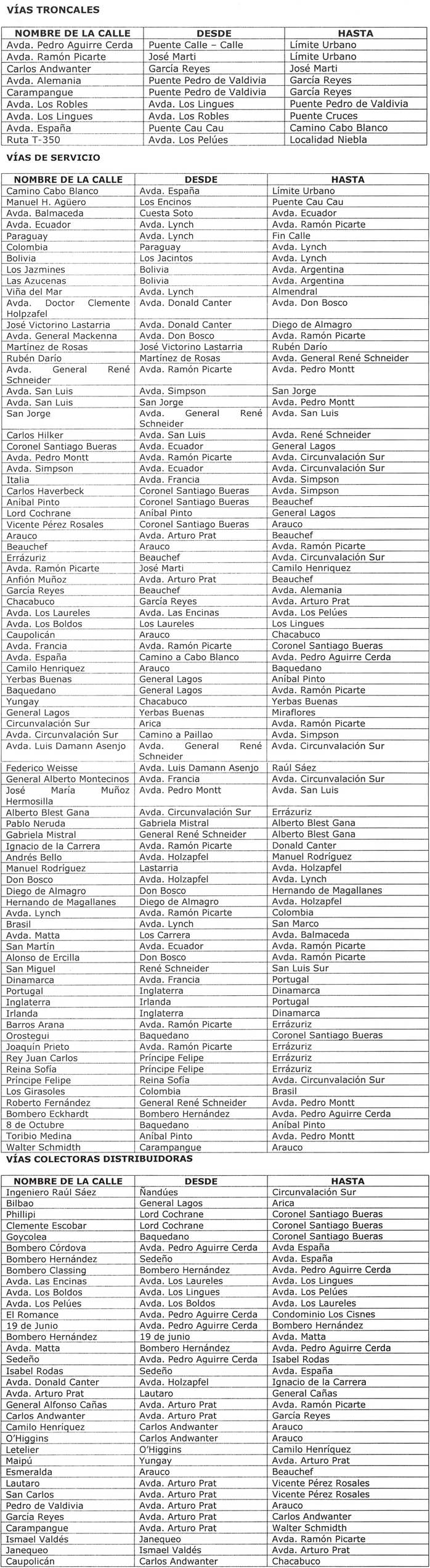 1. Establézcase para la comuna de Valdivia la siguiente Red Vial Básica: