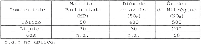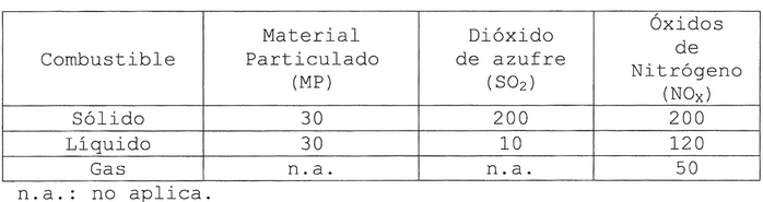 Tabla Nº 2: Límites de emisión para fuentes emisoras nuevas (mg/Nm³):