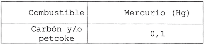Tabla Nº 3: Límite de emisión para Mercurio (Hg) para fuentes emisoras existentes y nuevas que utilicen carbón y/o petcoke (mg/Nm³):