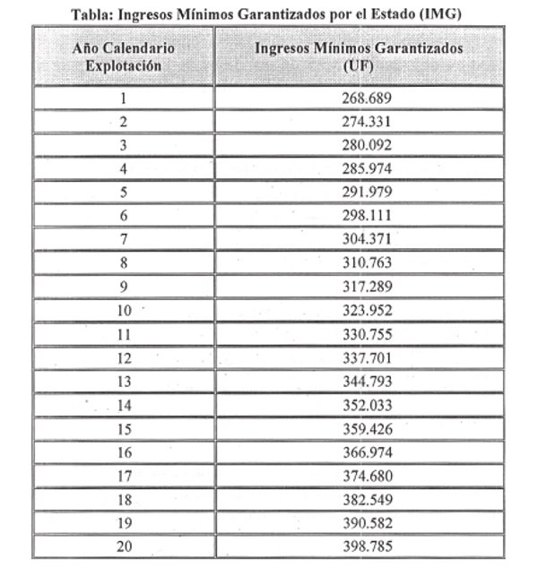 IMGi : Pagos a la Sociedad Concesionaria por concepto de