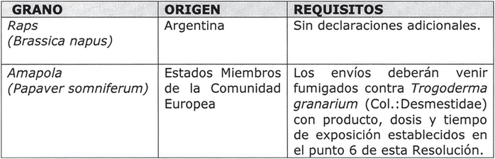 3. Agrégase en el resuelvo número 3, "Argentina" como nuevo origen del grano Guizotia abyssinica.