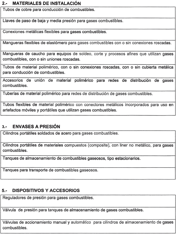 2º. Establécese que para la comercialización de los productos indicados a continuación, éstos deban contar previamente con un certificado de aprobación otorgado por un organismo de certificación autorizado por la Superintendencia de Electricidad y Combustibles: