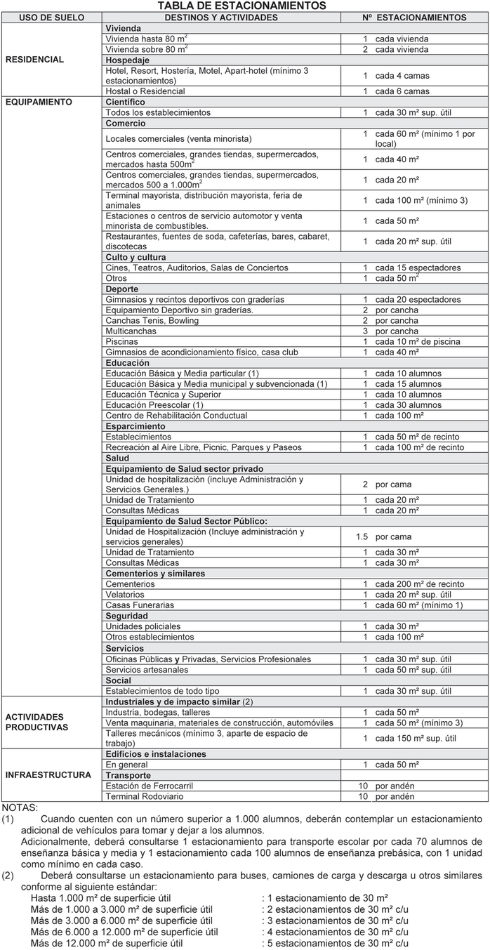 La Decreto N° 3920, Municipalidad de Talca, publicado el 02.11.2016, modifica la tabla de estacionamientos de la presente norma, de la manera que la citada norma indica.