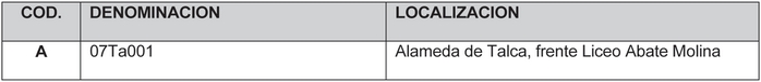 Están graficadas en el Plano y su descripción se detalla en la tabla siguiente, ordenadas de norte a sur y de poniente a oriente.