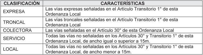 Conforme a lo señalado en la OGUC, las vías se clasifican de la siguiente forma: