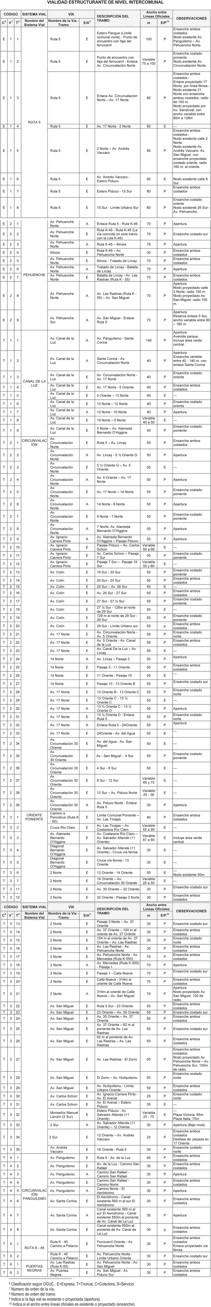 Artículo transitorio 1°: Vialidad de Nivel Intercomunal