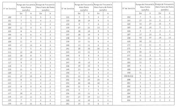 . La frecuencia mínima en horario fuera de punta, en