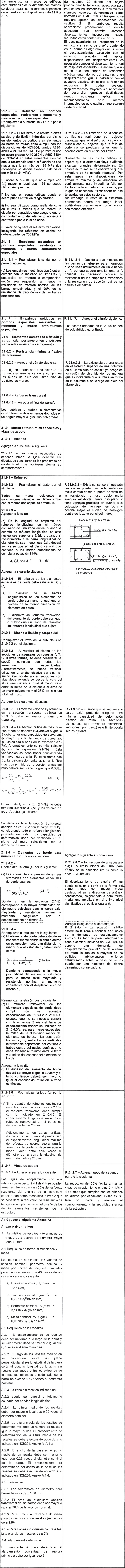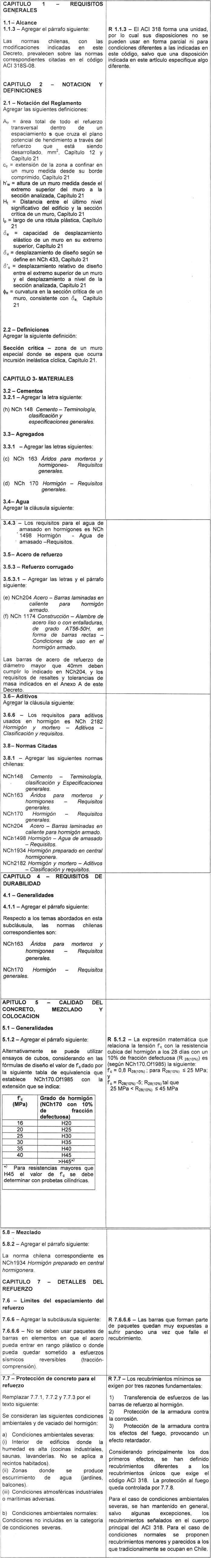Artículo Nº 3.- Fíjanse las siguientes adecuaciones al ACI 318S-08. Los números de este artículo corresponden a las cláusulas del ACI 318S-08, que se modifican, adicionan o reemplazan.