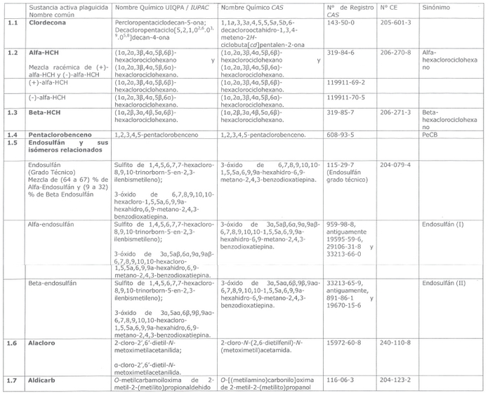 PROHÍBE LA FABRICACIÓN, IMPORTACIÓN, EXPORTACIÓN, DISTRIBUCIÓN, VENTA, TENENCIA Y USO DE PLAGUICIDAS CON CLORDECONA, ALFA-HCH, BETA-HCH Y PENTACLOROBENCENO, ENDOSULFÁN, ALACLORO Y ALDICARB