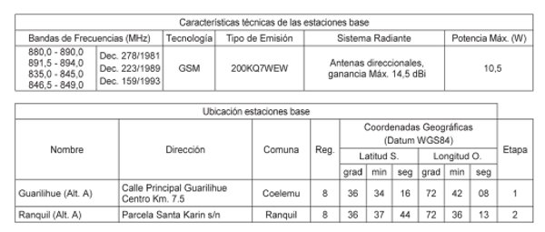1. Autorízase a la concesionaria para instalar, operar y explotar dos (2) estaciones base.