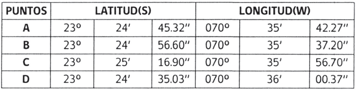 Artículo 1º.- Establécese el área de manejo y explotación de recursos bentónicos denominada Punta El Yeso, en la II Región de Antofagasta, en un área inscrita en la figura irregular, entre la línea de más baja marea y sus vértices, cuyas coordenadas geográficas son las siguientes: