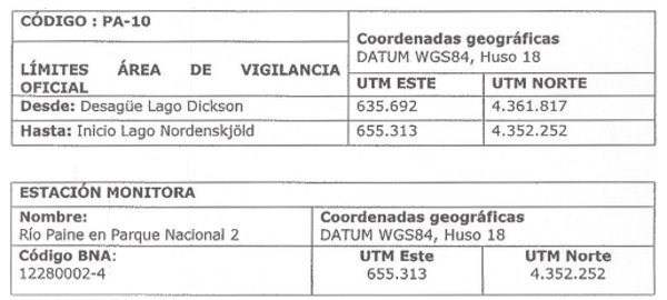 4.1 Área de Vigilancia en Río Paine