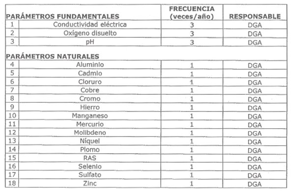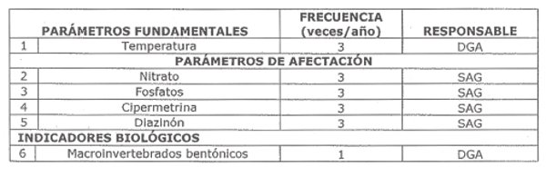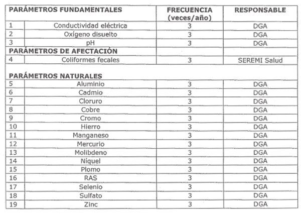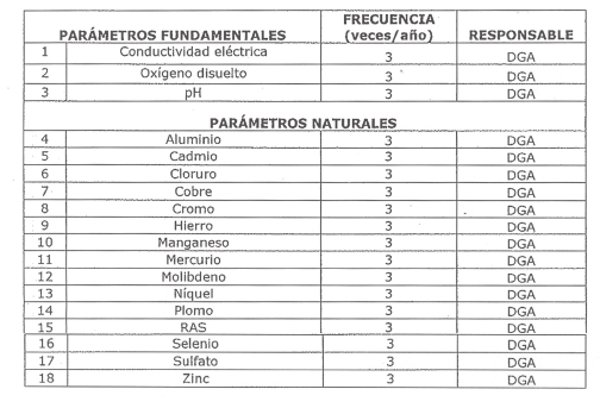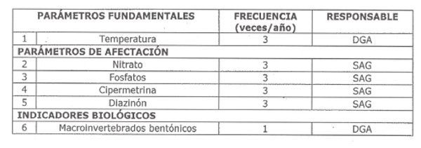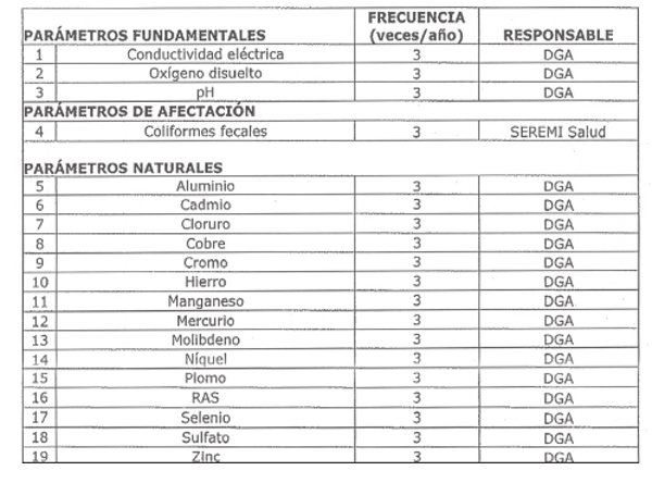 3.1 Frecuencias de monitoreo, parámetros de análisis y organismos responsables de las mediciones.