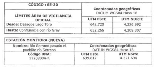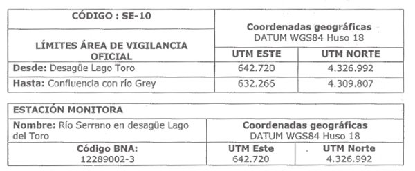 Se incorpora una nueva estación de monitoreo en Río Serrano en el área de vigilancia denominada "Naciente río Serrano" (SE-10), esto con el fin de evaluar posibles alteraciones en el ecosistema acuático, derivado de cambios en la calidad de las aguas en el sector denominado "Pueblito Serrano", donde se concentra una serie de actividades antrópicas ligadas a desarrollos viales, hoteleros, turísticos y administrativos, entre otros.