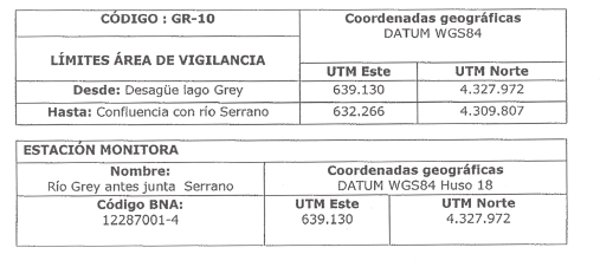 4.4 Área de Vigilancia: Río Grey