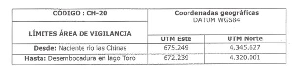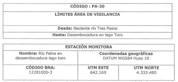 5.1 Área de Vigilancia no Oficial: Río Paine en Desembocadura Lago Toro