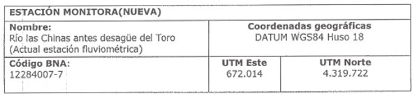 4.5.1 Nueva Estación de monitoreo: Río de Las Chinas en desembocadura Lago Toro