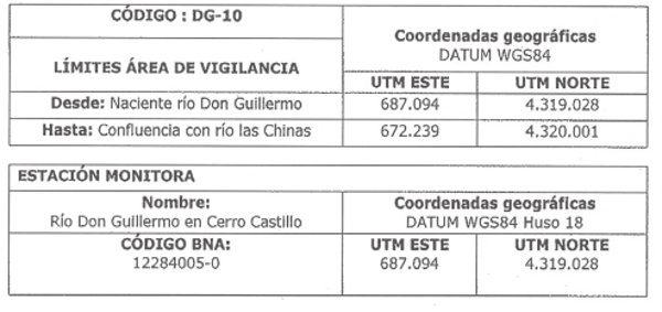 El objetivo de monitorear este tramo se refiere a caracterizar físico-químicamente las aguas de la zona en donde se emplaza el pueblo Cerro Castillo, para lo cual se incorpora un punto de monitoreo dentro del área de vigilancia "Río Don Guillermo (DG-10)".