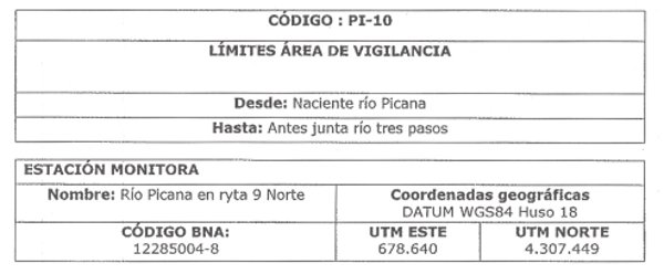 5.2 Área de Vigilancia no oficial: Río Picana
